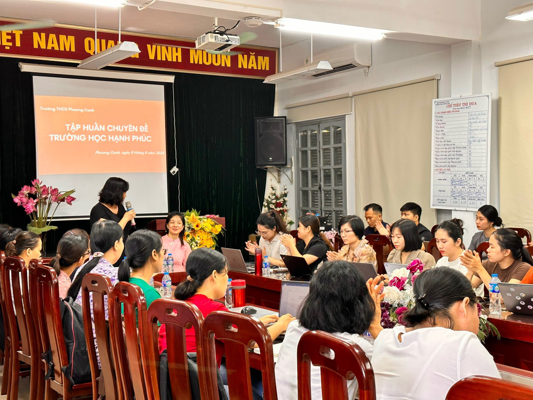 Hi vọng sau buổi đào tạo này các cô giáo trường THCS Phương Canh sẽ trang bị cho mình những kiến thức và kỹ năng cần thiết để xây dựng môi trường giáo dục hạnh phúc và lành mạnh.